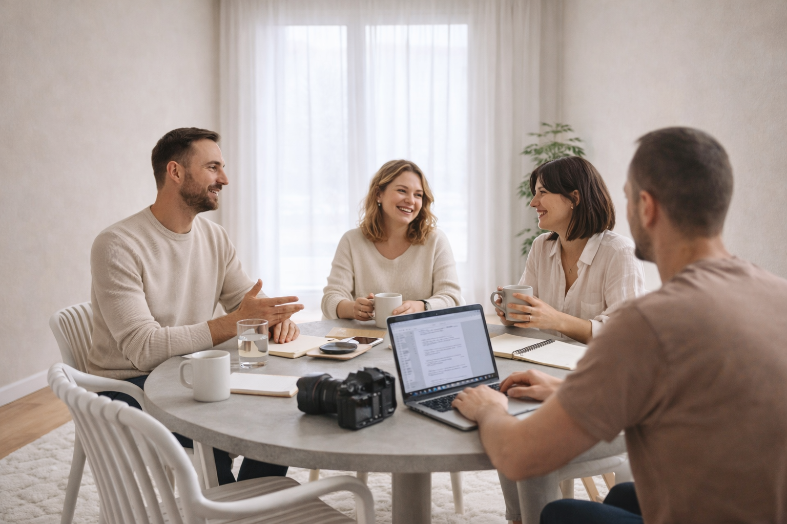 Ein persönlicher, ruhiger Rahmen für Austausch, Fokus und kreative Zusammenarbeit in kleiner Runde.