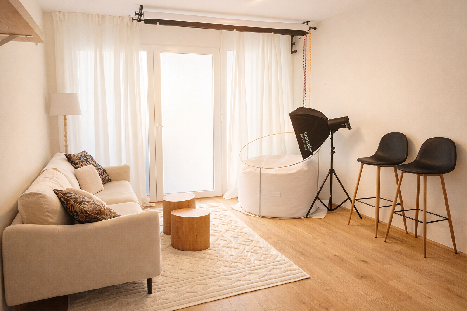 Ein ruhiger, exklusiver Rahmen für regelmäßigen Content, kreative Arbeit und kleine Sessions – fern von Hektik, Lärm und klassischen Mieträumen.